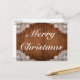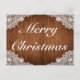 Tarjeta postal de felicitación navideña. Estilo rústico con fondo de tablones de madera y decoración de encaje blanco. Hay más artículos disponibles en este estilo en nuestra tienda. Puede editar el diseño más a fondo, cambiar colores, fuentes y agregar texto adicional haciendo clic en el enlace "personalizar más".