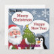 Difunde alegría navideña con esta adorable tarjeta de Navidad que presenta a Santa Claus diciendo "Feliz Navidad" y un pingüino adorable que se une con "Feliz Año Nuevo". ¡Perfecta para enviar cálidos deseos y sonrisas esta temporada!