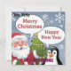 Tarjeta de Feliz Navidad con Santa y Pingüino