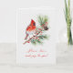 Celebre la temporada con la belleza atemporal de la naturaleza capturada en delicada acuarela. Esta tarjeta tradicional de Navidad presenta un cardenal rojo posado con gracia en una rama de pino, adornada con racimos de bayas rojas, un símbolo clásico del silencio milagroso del invierno y la alegría navideña. En el frente está inscrita suavemente el mensaje sincero: "Paz, amor y alegría para usted". Abra la tarjeta para revelar más encantador arte de cardenal, continuando la escena invernal serena. En su interior hay un verso cálido y festivo que seguramente traerá consuelo y alegría a los seres queridos cerca y lejos. Con su diseño elegante y sentimiento sincero, esta tarjeta es perfecta para compartir el espíritu de la temporada de una manera significativa y memorable.