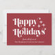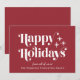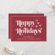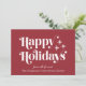 Tarjeta de Navidades corporativos de negocios para clientes, empleados, afiliados, etc., con "Happy Holidays" escrito en elegante tipografía serif blanca con un fondo rojo estacional. Añade tu mensaje (gracias, de todos nosotros, etc.) y el nombre de la compañía.