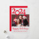 Tarjeta de feliz Navidad de fotos de vacaciones. Tarjeta de navidades rojos y blancos con tu foto familiar favorita para compartir con amigos y parientes. Incluye tipografía de guiones y letras grandes de 2024. Personalizar con tu estilo personal.