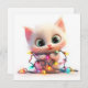 Agregue un toque de dulzura a sus saludos con este gatito blanco de ojos grandes y luces navideñas brillantes. Perfecto para mensajes festivos y emotivos de la temporada.