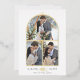 Moderna tarjeta de vacaciones de Relieve metalizado de fotos en arco con escritura decorativa "y" entre 2 palabras y un patrón de vegetación invernal en la parte posterior. Para una personalización más avanzada de este diseño, haga clic en el BOTÓN HERRAMIENTA DE DISEÑO AZUL.