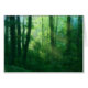 Rayos del sol matutino cayendo en un brillante bosque de verano, con enormes árboles cubiertos de hiedra y una gruesa manta de arbustos. Una fotografía manipulada digitalmente para dar a las viñas sobrecultivadas, la bruma azul-verde, los rayos de oro y el árbol verde primaveral una calidad de ensueño.
