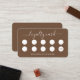 Estas sencillas y minimalistas tarjetas de fidelización al café son perfectas para dar a tus clientes como un incentivo para seguir regresando a tu cafetería. Compra 9 obtener 1 tarjeta de fidelización gratuita en un estilo moderno y clásico. Sólo tienes que añadir tu nombre comercial y tu etiqueta.