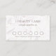 Tarjeta de fidelidad de la empresa de impresión de hojas de palma de color blanco y malva suave suave y delicada.