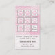 Delibera a sus fieles clientes con esta divertida y lúdica tarjeta de fidelidad rosa, perfecta para los negocios de captación de perros. Con un adorable Bulldog inglés en una patineta y un bonito fondo color de agua rosa, esta tarjeta está diseñada para llamar la atención y mantener a sus clientes de vuelta. Los iconos de la huella de la pata facilitan el seguimiento de las visitas, y se puede personalizar el texto para ofrecer una recompensa como un novio gratis, un descuento o un regalo especial en la novena visita. En nuestra tienda hay artículos de marketing que coinciden para ayudarle a crear una imagen de marca coherente y profesional.
