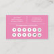 Esta tarjeta rosa de fidelidad plana es una forma elegante y práctica de recompensar a los clientes repetidos mientras mantiene su marca lucida. Su moderno diseño plano facilita el transporte en una cartera o en un monedero, lo que le permite mantenerse cómodo para el uso diario. El suave tono rosa aporta un toque de encanto y calidez, por lo que resulta especialmente atractivo para los salones de belleza, las boutiques, los cafés o cualquier negocio con una estética femenina o lúdica. Espacios claros y fáciles de leer permiten realizar sellos, golpes o seguimiento de recompensas, lo que ayuda a fomentar la participación de los clientes. Duradero y bien diseñado, es una herramienta profesional que refleja tanto la calidad como la atención. Esta tarjeta de fidelización, una opción sencilla pero atractiva, fortalece las relaciones con los clientes y mejora la experiencia de marca en general.