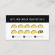 Esta tarjeta de fidelización de moda taco/mexicano/food truck incluye un fondo negro de pizarra con taco. Personalízalo para tus necesidades. Puedes encontrar productos coincidentes en mi tienda.