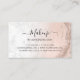 Elegante y elegante tarjeta de fidelización de artista de maquillaje con textura de mármol purpurina de oro de cobre falso, textura de mármol blanco y elegante fuente caligráfica.