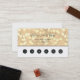 Las tarjetas de fidelidad a la moda con burbujas presentan un patrón de fondo de luces de bokeh en tonos de champán dorado, con el encabezado de tu personalizado, términos de fidelidad y seis golpecitos. Se muestra con "disfrutar 20% de descuento después de cinco visitas". Personalice el lado inverso con la información de contacto de su empresa. Para una mirada metálica, recomendamos la actualización al papel de acabado Pearl.