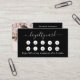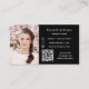 Un fondo negro clásico, texto blanco Al frente: Añadir descuento. Atrás: Personaliza y agrega tu foto, nombre, título, número de teléfono, correo, dirección del sitio web, código qr a tu sitio web.
