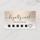 Diseño elegante de tarjeta de fidelidad de artista de maquillaje con textura de oro y mármol blanco gradiente de imitación de cobre y elegante fuente caligráfica.
