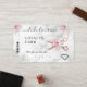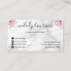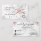 Tarjeta de fidelización moderna y elegante para los peinados con tijeras de oro rosa de cobre falsas, rosas rosas rosas rosas y blancas, fondo de mármol blanco y elegante fuente caligráfica.