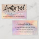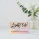 Esta es la tarjeta de descuento de lealtad perfecta para un negocio moderno, elegante y moderno. Este diseño presenta una tipografía de moda, cincelada y pincelada negra de bonito sobre un purpurina dorado glamoroso y giradamente impreso con fondo de gradiente holográfico rosa, melocotón, azul y violeta iridiscente. Estas tarjetas le añadirán ese toque personal y profesional a su publicidad de negocios y de carrera. ***NOTA DE DISEÑO IMPORTANTE: Para cualquier solicitud de diseño personalizado, como solicitudes de productos coincidentes, cambios de color, cambios de posición o cualquier otra solicitud de cambio, haga clic en el botón "CONTACTO" o envíe un correo electrónico al diseñador directamente a lafemme.art@gmail.com. Incluso puede enviarle un correo electrónico solicitando un diseño completamente personalizado y nuevo.