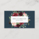 Elegantes tarjetas de negocios de fidelización floral en rosa rosa rosa, marsala de color burdeos y azul marino, con tu nombre y/o nombre de negocio enmarcado por un borde de flores acuáticas exuberantes y follaje verde sobre un rico fondo marino. Añade tus datos de contacto y tu oferta de lealtad a la parte posterior, con seis círculos de punchout.