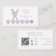 Diseño de tarjeta de fidelidad de panadería de estilo simple, limpio y minimalista que incluye una herramienta de repostería de acuarela (rodillo y manga pastelera). Un fondo floral de color púrpura claro y elegante crea un aspecto moderno. Personalice con el nombre de la tarjeta y los detalles de descuento. La parte posterior está diseñada en un estilo limpio y minimalista con el nombre de la empresa y el lema comercial, y la información de contacto personalizada con código Qr. Una tarjeta de presentación simple, elegante y con estilo para el pastelero casero, panadería, pastelería, empresario pastelero, chef, catering y mucho más.