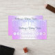 A todos les encanta ser valorados. Dé a sus clientes la oportunidad de presentarlos con estas elegantes, sofisticadas, sencillas y modernas tarjetas de fidelización de negocios con nombres personalizados. Derivados purpurinas de color morado espumoso, escritura marina oscura tipografía manuscrita, sans serif morado tipo y una diminuta torta floral de color morado superponen un fondo morado falso metálico. Personalice con su nombre de negocio completo y su oferta de fidelidad al frente. Rellene la parte de atrás con sus números de teléfono, dirección, correo electrónico, sitio web y cuentas de medios sociales. Ofrece a sus clientes una tarjeta de valor añadido de moda, profesional y elegante. Las tarjetas de visita y otros productos profesionales coincidentes también están disponibles en la colección "Dripping Purpurina Watercolor Cake Bakery Chef": Simplemente escriba su nombre de negocio, oferta de fidelidad y toda su información adicional en la sección "Personalice esta plantilla", y podrá personalizar fácilmente esta tarjeta de fidelización de negocios. Por favor, envíame cualquier pregunta o petición.