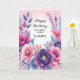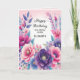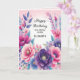 Tarjeta de cumpleaños para hermana con flores azules púrpura rosadas brillantes y lindas .