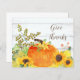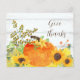 Tarjeta de caída rústica con calabaza acuática, girasoles y la frase "Regale gracias". Perfecto para Acción de Gracias, reuniones de otoño o envío de gratitud estacional. Un acogedor diseño inspirado en una casa de campo para la familia, amigos o notas de la anfitriona. Personaliza fácilmente la parte posterior de la tarjeta con sólo unos cuantos clics.