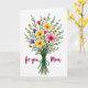 Esta tarjeta de felicitación presenta un ramo estilizado como el foco principal, colocado sobre un amplio fondo blanco que hace que las flores resalten. Los tallos se reúnen en la parte inferior y están atados con una cinta verde esmeralda, luego se extienden hacia arriba en un suave abanico como una ofrenda sostenida con cuidado ❤️. Los pétalos y las hojas tienen un aspecto suave pintado, con flores amarillas soleadas, rosadas suaves, lavanda suave y naranjas cálidas escondidas entre el verde exuberante. Muchas de las flores parecen flotar con un contorno blanco tenue, lo que les da un aspecto recortado que se siente ligero y afectuoso. Cerca de la parte inferior, las palabras "para ti, Mamá", están colocadas debajo del ramo en letra magenta fluida, centrada para equilibrar la disposición. El espacio abierto alrededor del ramo mantiene el enfoque en las flores, como una pausa silenciosa antes de un abrazo 🌼. La cinta se sienta en la base de los tallos