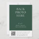 Comparte tu foto de compromiso y sitio web de boda en un diseño cohesivo con esta tarjeta de foto de 5x7 de doble cara creada para combinar con una invitación de boda de papel vellum o anuncio de "save the date" de papel vellum. La parte delantera presenta una foto vertical completa, mientras que la parte trasera incluye espacio para una segunda imagen junto con el sitio web de la boda y un código QR personalizable para que los invitados puedan responder fácilmente o ver los detalles del evento. Este diseño combina tus fotos de compromiso con información práctica en un formato limpio y moderno. Ideal para celebraciones contemporáneas, románticas o atemporales, esta tarjeta de foto de boda con código QR agrega estilo y función a tu papelería de boda de papel vellum.