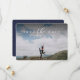 Con una tipografía simple pero elegante, esta tarjeta para guardar la fecha es un diseño clásico que presenta una sola foto horizontal. El texto en blanco se coloca en la parte superior de la foto junto con un filtro oscuro para permitir una mejor legibilidad. La parte posterior es de un azul marino moteado, pero el color es editable haciendo clic en "personalizar".