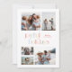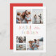 Una tarjeta de felicitación moderna y sencilla con collage de fotos familiares con 6 fotos personalizadas y saludo personalizado. La parte frontal de la tarjeta es blanca y dice "vacaciones alegres" en letras de tipografía serif coloridas.