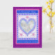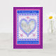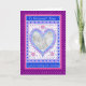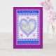 Una bonita Tarjeta de Foto de Aniversario de Boda con corazones y flores en un patrón similar a una colcha, en azul, plata, rosa y púrpura. Agregue su propia foto y su propio texto tanto en el interior como en la portada; a partir de un diseño pintado a mano por Judy Adamson.
