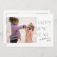 Una tarjeta de foto de Año Nuevo con una fuente moderna y escritura en la parte frontal que muestra una foto. En la parte posterior hay espacio para seis fotos más para destacar tus recuerdos favoritos del año. También puedes agregar tu propio mensaje personal en la parte posterior.