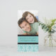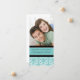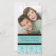 Tarjeta de anuncio de compromiso con foto en elegante azul turquesa, patrón clásico floral damask en negro y blanco, personalizable con sus nombres, la forma perfecta de anunciar su compromiso a amigos y familiares. Patrón disponible en una amplia gama de productos de boda a juego.