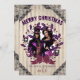 Encaje victoriano negro, papel pintado a rayas antiguo, una corona de Navidad con adornos de cráneos que rodean tu foto favorita. El saludo perfecto para una Navidad gótica. Parte de nuestra colección de Navidad Muy Alegre Gótica.