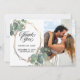 Buscando una tarjeta de agradecimiento para boda de fotos? Considere esta única tarjeta de agradecimiento con guión de moda de diseño con eucalipto y marco geométrico de oro