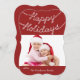 Su foto favorita está acentuada con luces centelleantes que deletrean Felices Fiestas sobre un fondo rojo de arándano.