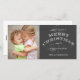 FELIZ TARJETA DE FOTO DE NAVIDAD EN COLORES GRIS Y BLANCOS CON FUENTES DE VINTAGE SCRIPT. PERSONALIZAR CON SU FOTO Y NOMBRES DE LA FAMILIA. ELKE CLARKE© Te desea una feliz Navidad y un feliz año nuevo.