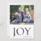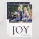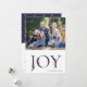 Ramas de botánica de invierno, ramas y bayas, adornadas con "ALEGRÍA", en dorado festivo y verde esmeralda, tarjeta de foto de fiesta plana.