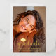 Anuncie la graduación de su hijo con esta moderna tarjeta de foto con un lindo gorra de graduación. La tarjeta tiene un overlay fotográfico y el texto es un precioso Relieve metalizado dorado. La parte trasera de la tarjeta tiene otra foto y texto para que usted añada detalles sobre su graduado y dé detalles sobre la celebración. Personaliza fácilmente esta tarjeta de invitación de graduación con la foto y los detalles de tu graduación. Si necesita algún cambio en el diseño, como color, texto o tipo de letra, póngase en contacto con nosotros en seamistmail@gmail.com. Nos encanta ser parte de tus recuerdos felices.