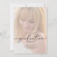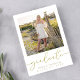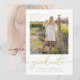 Celebre a su graduado con este elegante diseño de foto de graduación con escritura en oro que presenta tipografía de caligrafía refinada y una disposición personalizable de retrato de estudiante de último año. La sofisticada letra dorada combinada con un estilo moderno y limpio crea un aspecto atemporal perfecto para celebraciones de graduación de escuela secundaria o universidad. Personalice con la foto y los detalles de su graduado para crear un hermoso recuerdo que amigos y familiares apreciarán durante años.