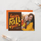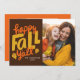 ¡Celebra la temporada con esta tarjeta de foto de Happy Fall Y'all de otoño! El frente presenta "Happy Fall Y'all" en colores festivos de otoño de naranja, amarillo, dorado y marrón, junto con tu foto, nombre y año familiar favorito. La parte posterior de la tarjeta muestra una segunda foto con espacio para tu saludo personalizado en blanco sobre un fondo naranja. Una manera bonita y colorida de compartir tus fotos familiares de otoño y difundir la cálida alegría de otoño con amigos y seres queridos.