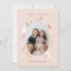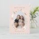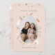 Dulce tarjeta de foto de Pascua con pequeñas flores e ilustraciones de conejos.
