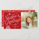 Tarjeta de Foto de Temporada de Vacaciones Roja con Guión. Personalice con su propia foto y agregue cualquier texto.