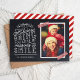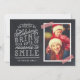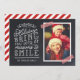 Personalizado económico imprimió tarjetas fotográficas de vacaciones con plantillas sencillas para la personalización. Este divertido diseño presenta tipografía de estilo lindo con letras a mano sobre un falso fondo de pizarra con cinta de washi de rayas rojas alrededor de tu foto. El texto dice "Espero que las vacaciones te traigan muchas razones para sonreír". Personalízalo con tus fotos, tu apellido, el año u otro texto personalizado. El lado inverso tiene espacio para fotos o texto adicionales. Utilice las herramientas de diseño para editar el texto, añadir más fotos y crear una única tarjeta fotográfica de vacaciones.