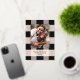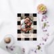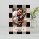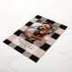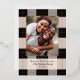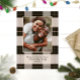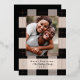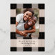 Elegante patrón de plaid negro simple con foto familiar y acentos de lámina de rosa dorado real. Personaliza con tu propio nombre y saludo.