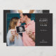 Esta tarjeta de foto de vacaciones de Año Nuevo es perfecta para anunciar un embarazo. Dice "Estamos esperando un Feliz Año Nuevo" con un espacio para la fecha de parto y el nombre de la familia que acentúa una foto personalizable. La parte posterior incluye una segunda foto y un mensaje adicional.