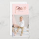 Este diseño de tarjeta de foto de temporada presenta un fondo rosa suave moderno con una fuente de letra a mano que dice "paz" en una textura de lámina de oro rosa.