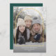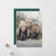 Esta tarjeta de foto de vacaciones moderna presenta una foto grande y un simple arco superpuesto. El arco de falso pan de oro se superpone a la foto vertical completa. Personalice con su foto familiar favorita, un saludo de Navidad personalizado y sus nombres y año en la parte inferior. En la parte posterior de la tarjeta, encontrará espacio para más fotos o un mensaje personalizado si lo desea. El color de fondo verde oscuro del bosque en la parte posterior se puede cambiar.