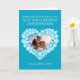 Tarjeta de foto del hermano y la cuñada en el 4º aniversario de boda con topacio azul. Personaliza esta tarjeta de aniversario de boda con topacio azul con tu relación, foto y años de matrimonio, y mensaje interior. El ejemplo dice Hermano y Cuñada en su Aniversario de Boda de Topacio Azul y fechas. Efecto de corazón con gema de topacio azul y diseño de Sarah Trett. www.sarahtrett.com para www.mylittleeden.com