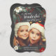 Tarjeta de Navidad contemporánea con forma de soporte en relieve con flores blancas y rojas, ramas de pino y bayas sobre un fondo de pizarra moderna.