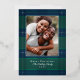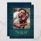Elegante y sencillo patrón de cuadros azules y verdes con foto familiar y acentos de papel plateado real. Personalice con su propio nombre y saludo.